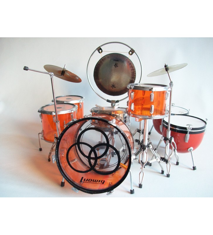 Batterie miniature, réplique de la Ludwig orange transaprent de John Bonham de Led Zeppelin.