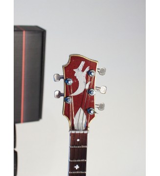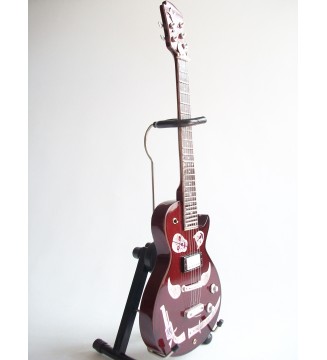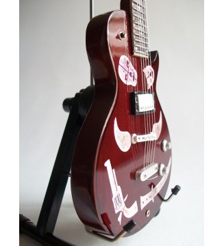 Guitare miniature, véritable réplique de la guitare jouée par Keith Richards des Rolling stones. Cette guitare ne possède que 5 cordes au lieu de 6. Elle a été fabriquée en 1981 par le luthier Tony Zemaitis en 2 exemplaires pour le guitariste des Rolling stones, mais il n’en subsiste plus qu’un unique modèle. Cette guitare miniature est une opportunité d’avoir une copie miniature de cette rareté !