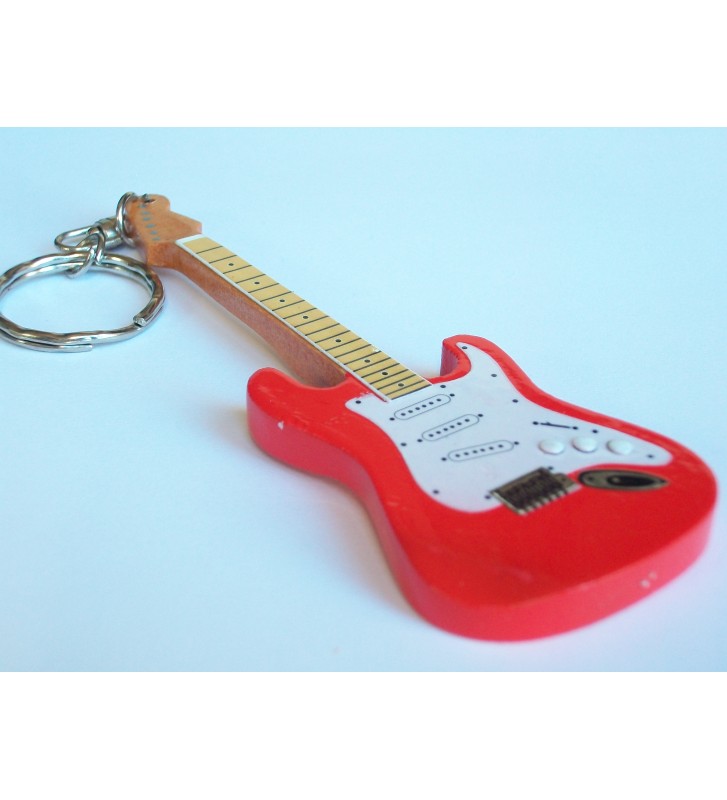 Porte clef bois forme guitare stratocaster rouge - Andy summers The Police